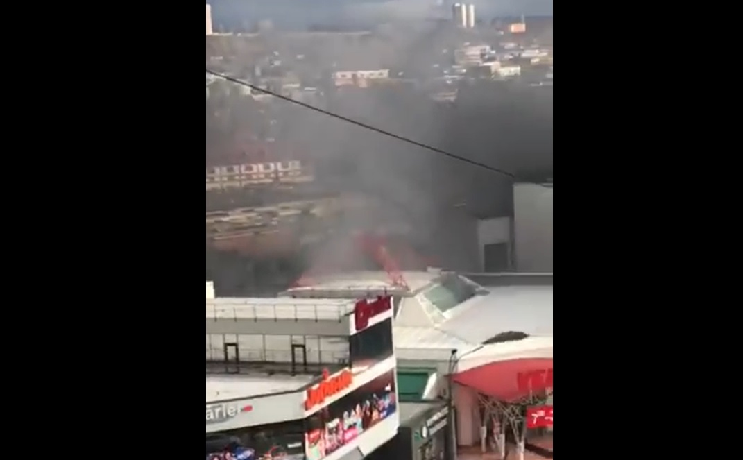 Imaginile cu fumul dens, care pare să iasă din spatele supermarket-ului, au fost postate în grupul de facebook „GBM”.
