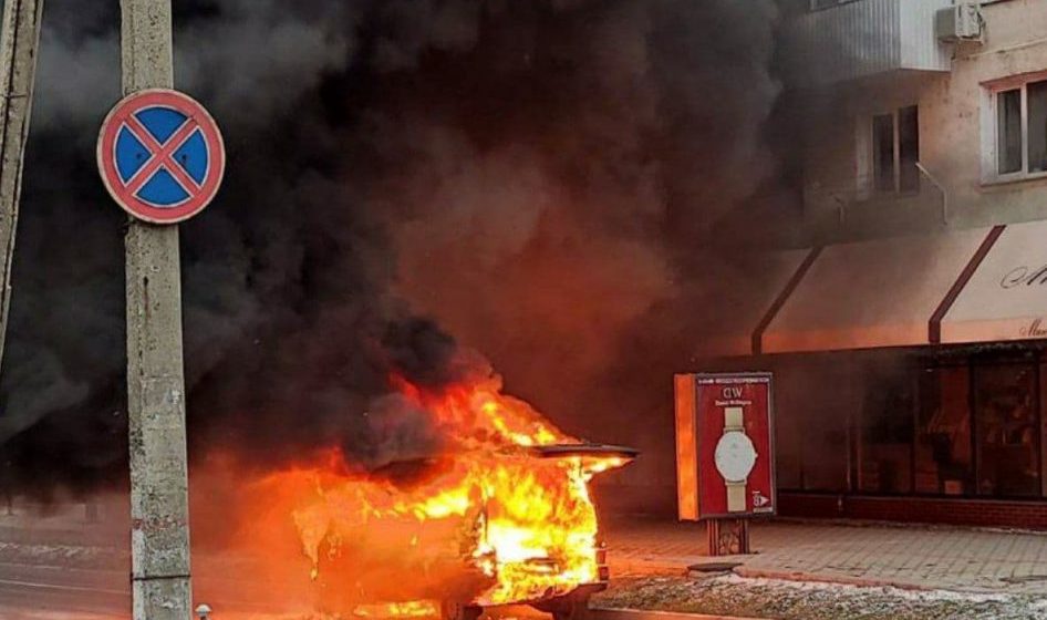 Incendiu de proporții, în centrul orașului Tiraspol. Mai multe echipaje de pompieri au intervenit după ce o mașină a luat foc din mers.