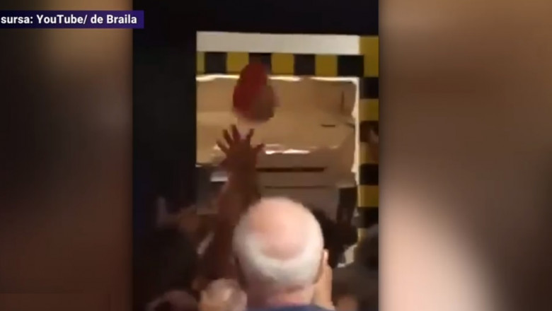 Din imaginile postate pe internet de către un brăilean se poate observa cum oamenii se împing și își dau coate pentru a prinde un pui. Din cauza înghesuielii, vânzatoarea, aflată în depozit, a fost nevoită să arunce puii către clienții care se certau.