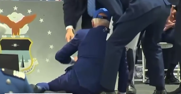 Căzătura a venit după ce Biden a rostit un discurs de deschidere a unei ceremonii, unde i-a avertizat pe absolvenți că vor intra în serviciul Forțelor într-o lume din ce în ce mai instabilă, invocând provocările din Rusia și China.