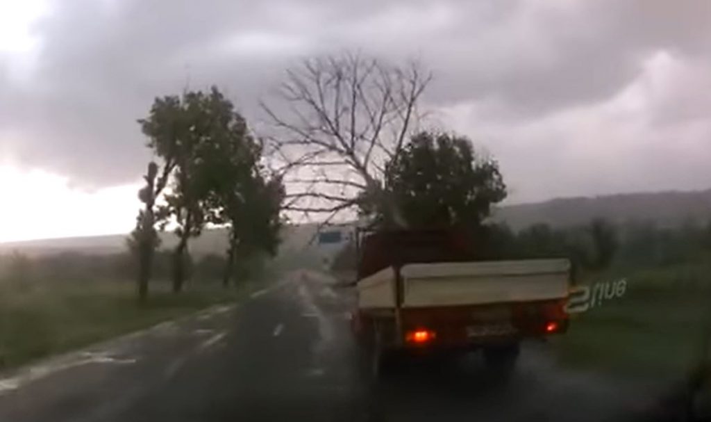 A scăpat ca prin urechile acului. Este vorba despre un șofer care circula pe un drum din apropierea localității Soltănești din Nisporeni. În timp ce se deplasa, un copac s-a prăbușit din senin pe șosea, în fața camionului.