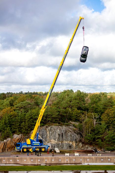 Volvo a recurs la acest test, care reprezintă o o premieră mondială în domeniul siguranței auto. A ridicat 10 mașini cu macaraua până la o înălțime de 30 metri și le-a dat drumul de acolo. În astfel de situații, sunt șanse mari ca ocupanții mașinilor să fie în stare gravă. Astfel, sunt prioritare descarcerarea victimelor și transportarea lor la spital în cel mai scurt timp. Specialiștii în astfel de intervenții vorbesc despre “ora de aur”. Trebuie să extragă victimele din mașină și să ajungă cu ele la spital în decurs de o oră după ce accidentul a avut loc.