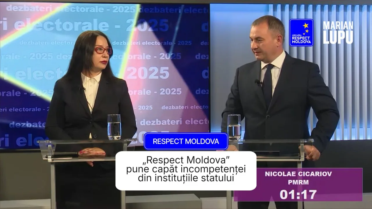 Instituțiile publice trebuie să fie conduse de profesioniști, nu de persoane loiale politic. Declarația a fost făcută de către secretarul general al Partidului „Respect Moldova”, Nicolae Cicariov, la dezbaterea electorală de la Exclusiv TV.