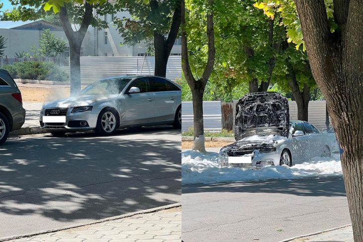 O mașină de model Audi a luat foc în centrul municipiului Cahul, pe bulevardul Victoriei.