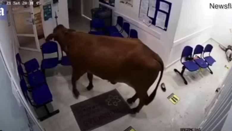 Scene incredibile într-un spital din Columbia, unde o vacă a atacat oamenii care așteptau să intre în cabinete, pentru a fi consultați.