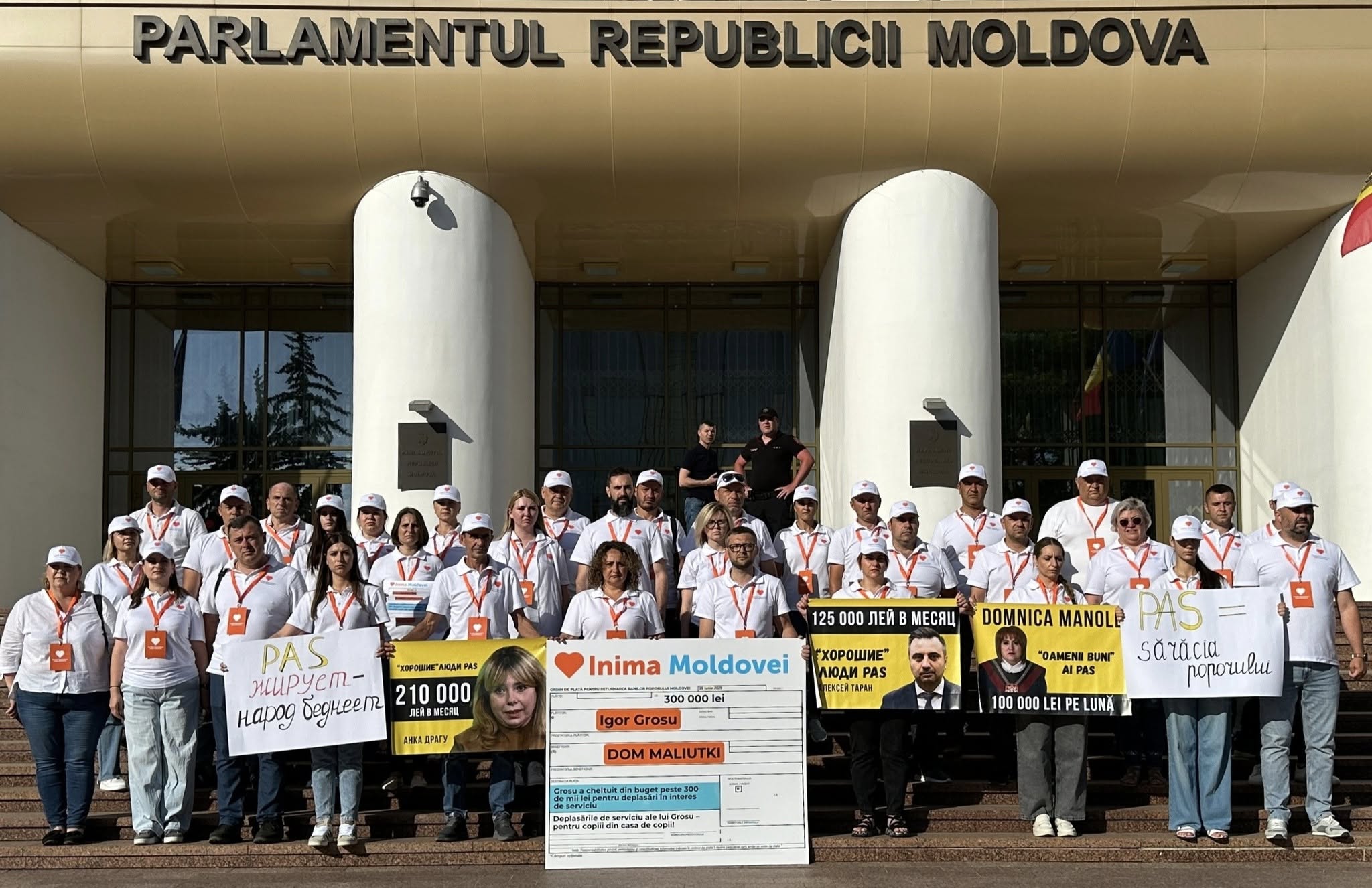 În timpul protestului, activiștii „Inima Moldova” le-au înmânat deputaților PAS, inclusiv președintelui Igor Grosu, „chitanțe de plată” simbolice pentru donații din veniturile nemeritate către instituțiile sociale – case de copii, școli-internat și aziluri de bătrâni.