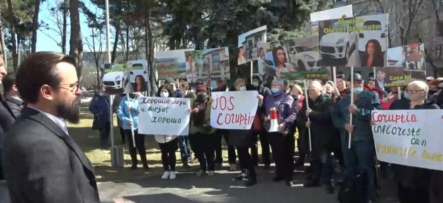 Partidul „Șor” a desfășurat un flashmob în fața Guvernului Republicii Moldova. Potrivit participanților de la protest, flashmobul are loc împotriva corupției, informează Sinteza.org