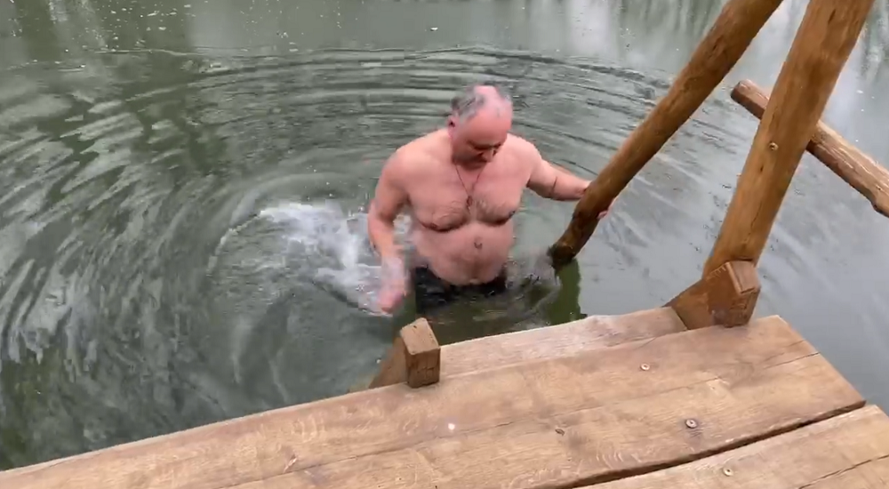 „Tradiționala scufundare în apă de Bobotează. Zăpadă nu-i, dar temperaturile tot sunt reci, deci e bine și pentru sănătate, nu doar pentru suflet. Un gând bun pentru toți creștinii.„, a scris Igor Dodon.