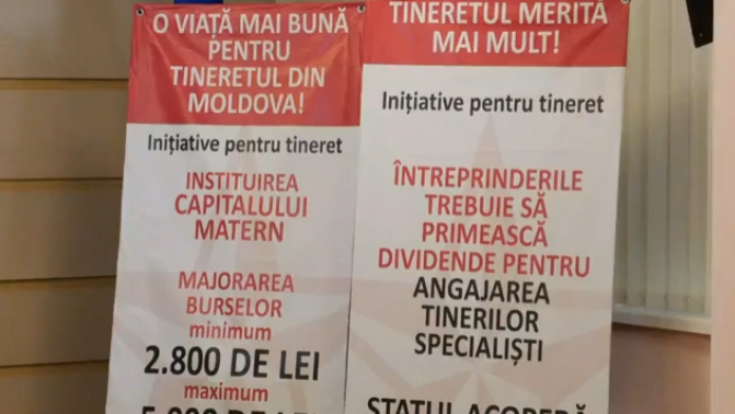 Printre inițiativele PSRM destinate tinerilor se numără: introducerea programului „capital maternal”, cu sprijin financiar între cinci și treisprezece salarii medii în funcție de numărul copiilor; subvenționarea studiilor în colegii și universități pentru tinerii din familii cu venituri mici, pentru studenții orfani și pentru tinerii cu dizabilități; subvenții pentru angajatorii care oferă locuri de muncă și instruire tinerilor specialiști; acoperirea a 20% din plata lunară a creditului în programul „Prima Casă”; majorarea burselor de la 1295 de lei la 5000 de lei.