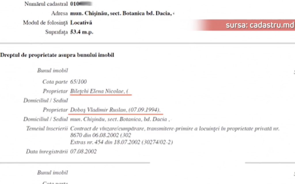 Un extras de la Cadastru, făcut public de Ziarul de Gardă, arată însă că Vlad Bilețchi este totuși fiul controversatului om de afaceri, iar anterior, tânărul politician a purtat numele de Vladimir Doboș. La începutul anilor 2000, acesta, împreună cu părinții săi, Elena și cu Ruslan Doboș, au avut viza de reședință într-un apartament din sectorul Botanica al capitalei. Datele din document cu privire la anul nașterii lui Vladimir Doboș coincid cu cele ale lui Vlad Bilețchi.
