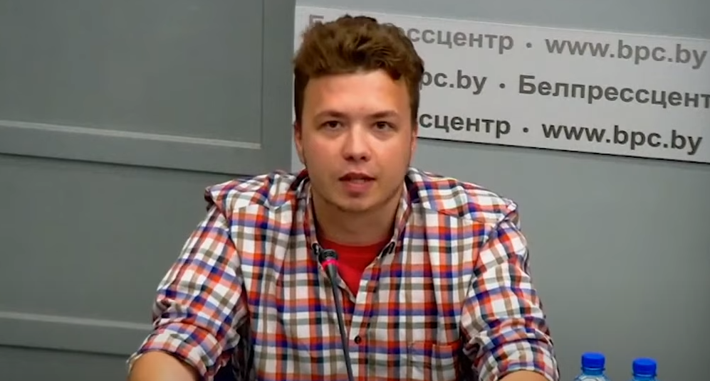Bloggerul arestat Roman Protasevici a fost dus de la centrul de detenție preventivă la o conferință de presă a Ministerului de Externe din Belarus, „dedicată” incidentului cu o aterizare de urgență la Minsk a avionului Ryanair, informează N4.md