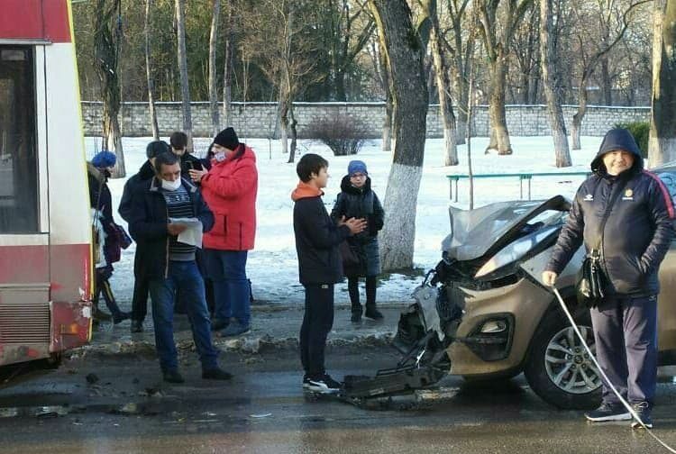 Accident violent, pe o stradă din Bălți. Șoferul unei mașini s-a izbit în partea din spate a unui troleibuz de linie.