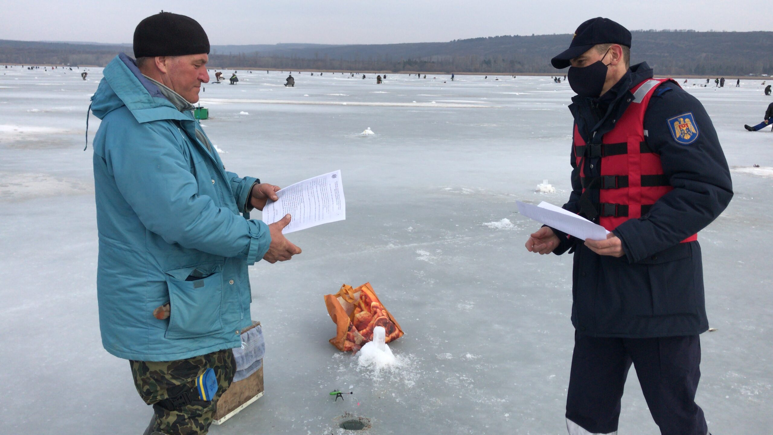 Aici salvatorii, însoțiți de polițiști și reprezentanții Agenției Apele Moldovei, au informat zeci de iubitori de pescuit la copcă care se aflau pe toata suprafața bazinului acvatic. Angajații IGSU au comunicat cu oamenii de pe iaz și le-au vorbit despre riscurile la care sunt expuși. Specialiștii i-au îndemnat să părăsească lacul întrucât gheața lacului nu depășește grosimea de 7 cm. Mai mult, salvatorii și polițiștii le-au înmânat pliante și i-au avertizat că aflarea la o distanță mare de mal le pune viața în pericol.