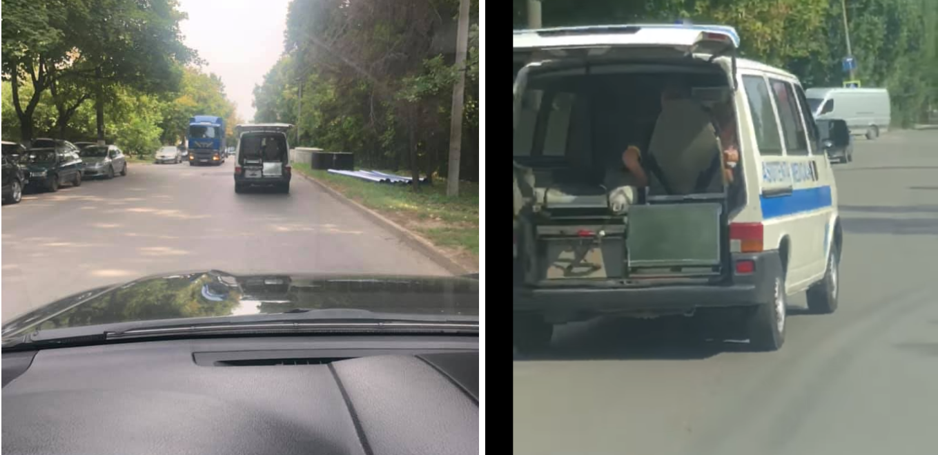 Caz neobișnuit pe o stradă din Capitală. Ambulanța a fost surprinsă în timp ce circula cu portbagajul deschis.