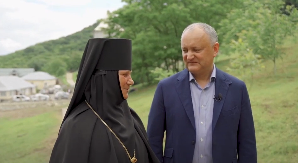 VIDEO // Stareța mănăstirii din Călărășeuca i-a mulțumit lui Igor Dodon pentru reparația drumului, care duce spre lăcașul sfânt