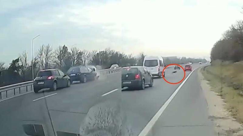În imagini se vede cum un șofer frânează brusc pentru a nu ucide câinele, iar în rezultat, alți doi șoferi ce veneau din spate, pentru că nu s-au așteptat la așa o manevră a celui din fața loc, nu au reușit să frâneze și s-au tamponat în lanț.