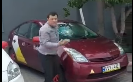 După aceasta, bărbatul a mers să caute o altă piatră și a lovit un al doilea autoturism, distrugând parbrizul, apoi se întoarce la prima mașină și aruncă piatra din nou. În total, trei mașini care aparțin unei firme de taxi au fost distruse.