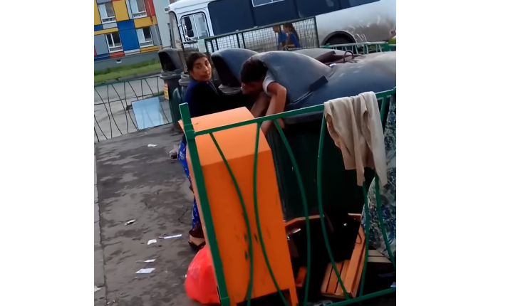În orașul Samara, din Federația Rusă, o femeie de etnie romă și-a băgat fiul în tomberon pentru ca acesta să caute produse expirate aruncate din magazinul din apropiere. Clipul video a fost postat pe YouTube de către un internaut.