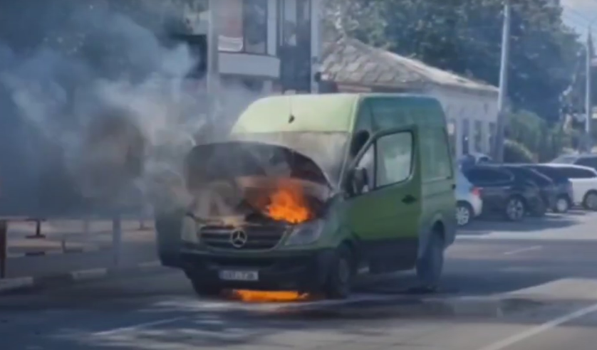 Un microbuz a fost cuprins de flăcări pe o strada din Bălți, scrie TVN