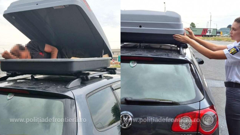 În urma controlului, poliţiştii de frontieră au constatat că în portbagajul suplimentar montat pe plafonul autoturismului, se afla ascuns un bărbat.