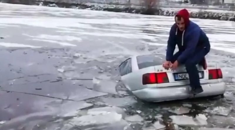 Incidentul a fost filmat de către prietenii persoanei care se afla pe acoperișul unității de transport. Aceștia îi strigă „sari” și încearcă să-i întindă un băț. La un moment dat, bărbatul sare pe brânci, iar gheața începe să crape sub el, cu toate acestea, reușește să iasă din apă.