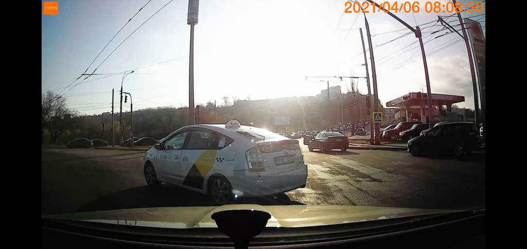Cazul s-a întâmplat în dimineața zile de 6 aprilie, la ora 08.10, sensul giratoriu de la intersecția străzilor Calea Orheiului cu Tudor Vladimirescu din sectorul Râșcani. Momentul periculos a fost filmat pe o cameră de bord, iar apoi postat pe o rețea de socializare. În video se vede cum un automobil circulă regulamentar pe sens giratoriu, iar la un moment dat din partea dreapta a vehiculului apare o mașină de taxi.