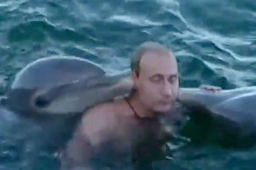 În filmul respectiv, Putin se joacă cu delfinii şi mamiferele îl sărută.