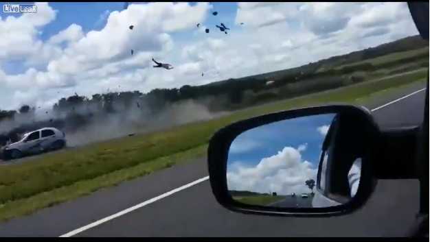 Bărbatul de 50 de ani a fost filmat în timp ce circula cu o viteză amețitoare pe o autostradă din apropierea capitalei braziliene, Brasilia. Motocicleta acestuia s-a izbit frontal de un alt automobil și bărbatul a fost aruncat zeci de metri. Motociclistul a decedat pe loc.