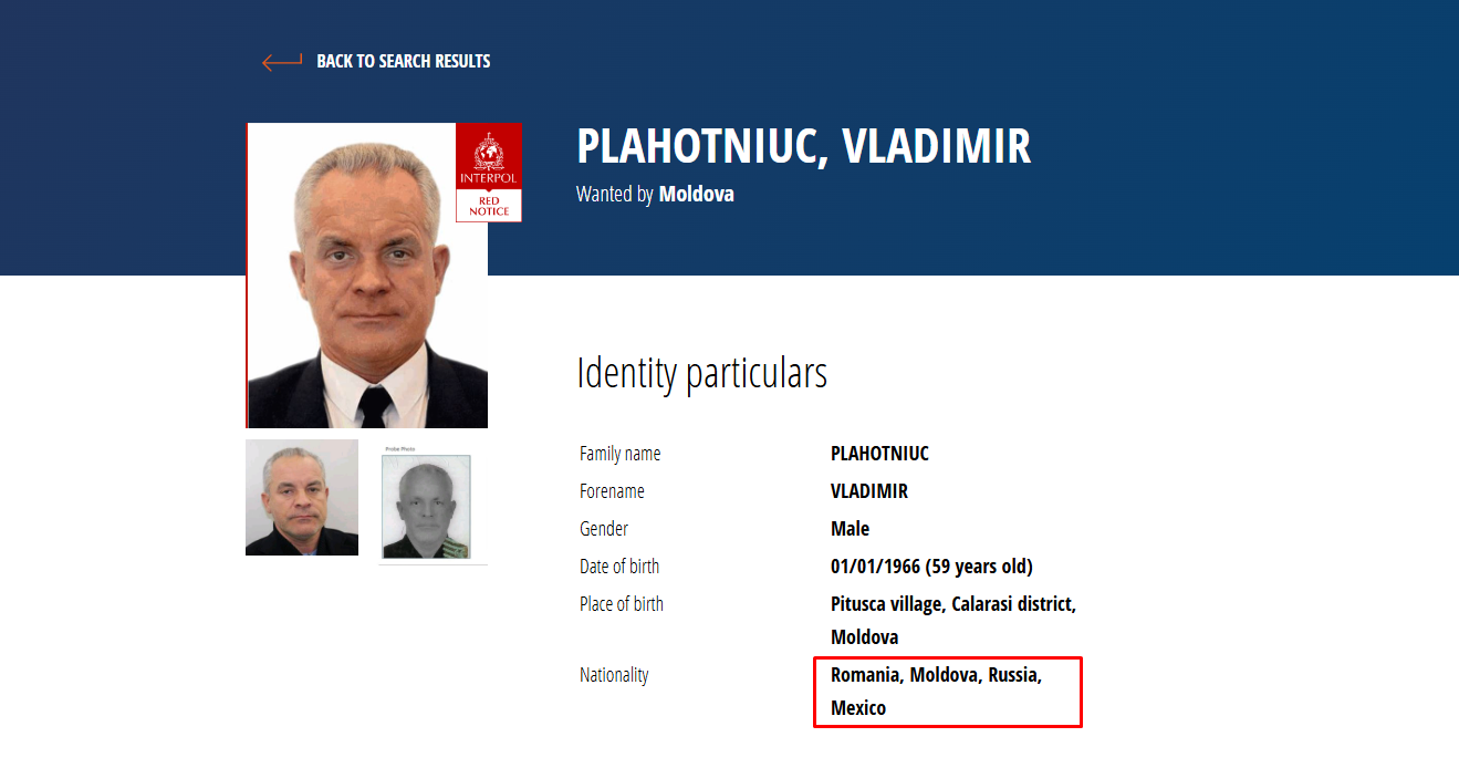 Vlad Plahotniuc este căutat în baza documentelor de identitate și pașapoartelor emise de Republica Moldova, România, Federația Rusă și Mexic (numele în acte fiind Perez Gonzales Vito). Deși a părăsit Republica Moldova în 2019, autoritățile moldovene au transmis către Interpol o solicitare de urmărire internațională, iar în prezent fostul lider al Partidului Democrat figurează în bazele de date ale organizației internaționale de cooperare polițienească.
