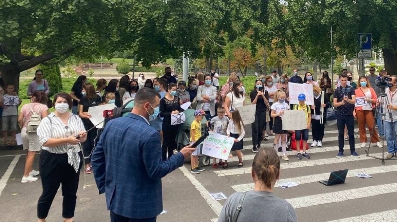Zeci de părinți cu copii au protestat în fața Guvernului Republicii Moldova. Oamenii sunt nemulțumiți de condițiile impuse de către autorități pentru organizarea lecțiilor în școli, scrie primul.md
